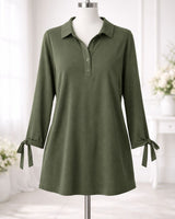 Haki krāsas tunikas tipa blūze ar sasienamām piedurknēm