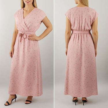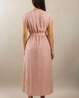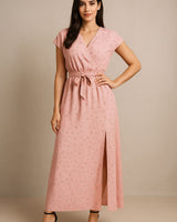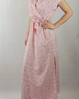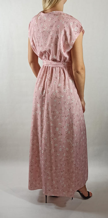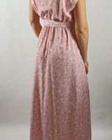 Платье нежно-розового цвета. Легкое, с цветочным принтом, длинное, летнее.