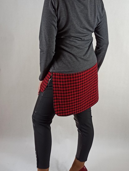 *Ja jūsu vēlamais izmērs šobrīd nav pieejams, lūdzu, sazinaties ar mums 20623132 vai mod-kleitas@inbox.lvTunika pelēka , apakšējā daļā sarkani, melna rūtota.